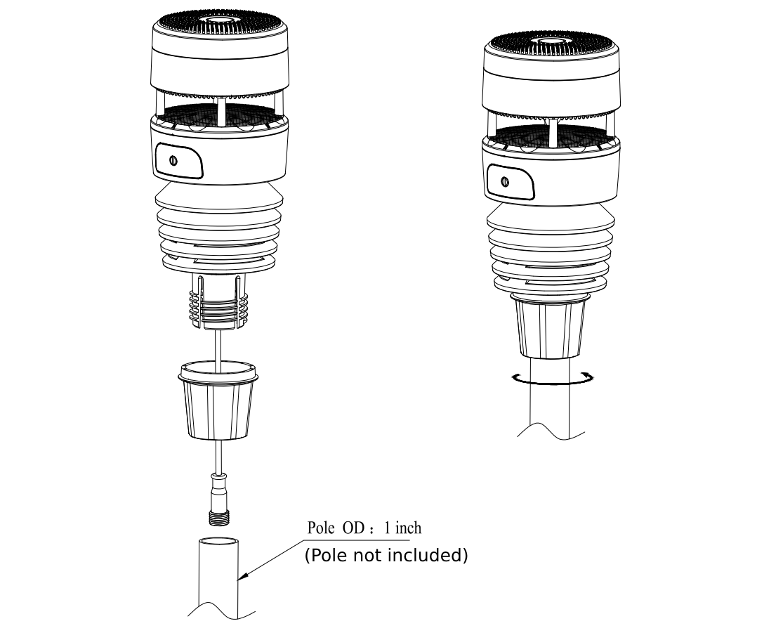 - Misst Temperatur, Luftfeuchtigkeit, Luftdruck, Niederschlag, Windgeschwindigkeit und -richtung, Licht, UV (kein Solarpanel);