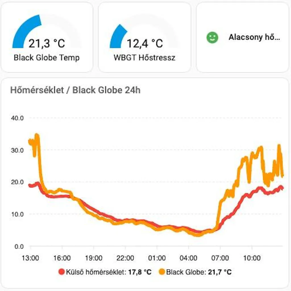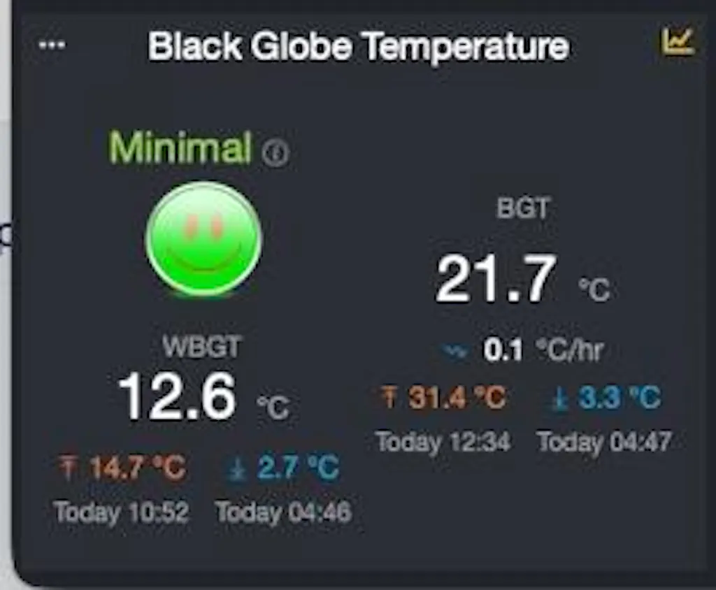 To display WBGT (Wet Bulb Globe Temperature) data in the app, the WN38 must be used together with an Ecowitt outdoor temperature and humidity sensor from either an outdoor array or a WN32(WN31 is not feasible).