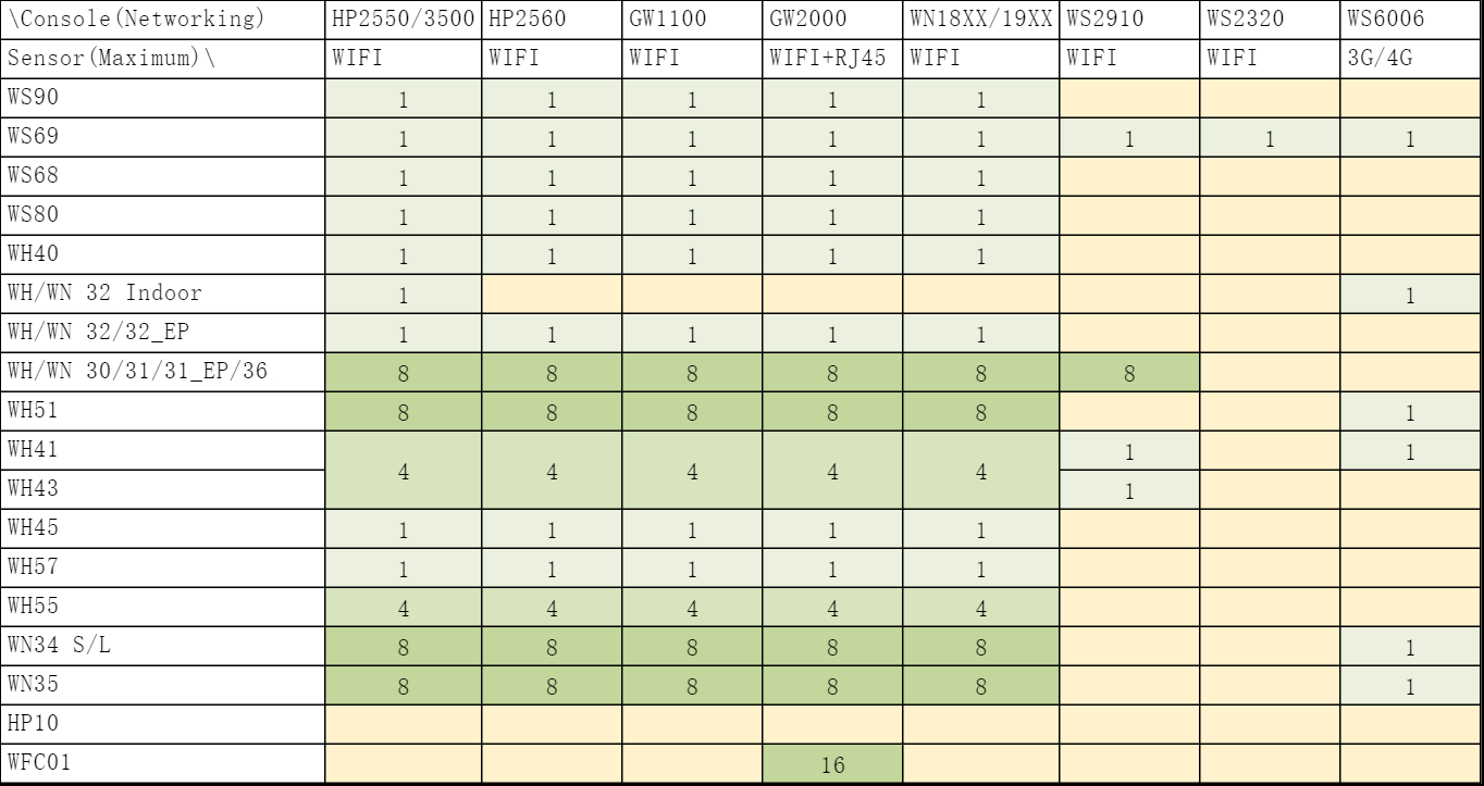 Note: The "1/4/8/16" means 1 console supports 1/4/8/16 sensors (One sensor supports multiple consoles)